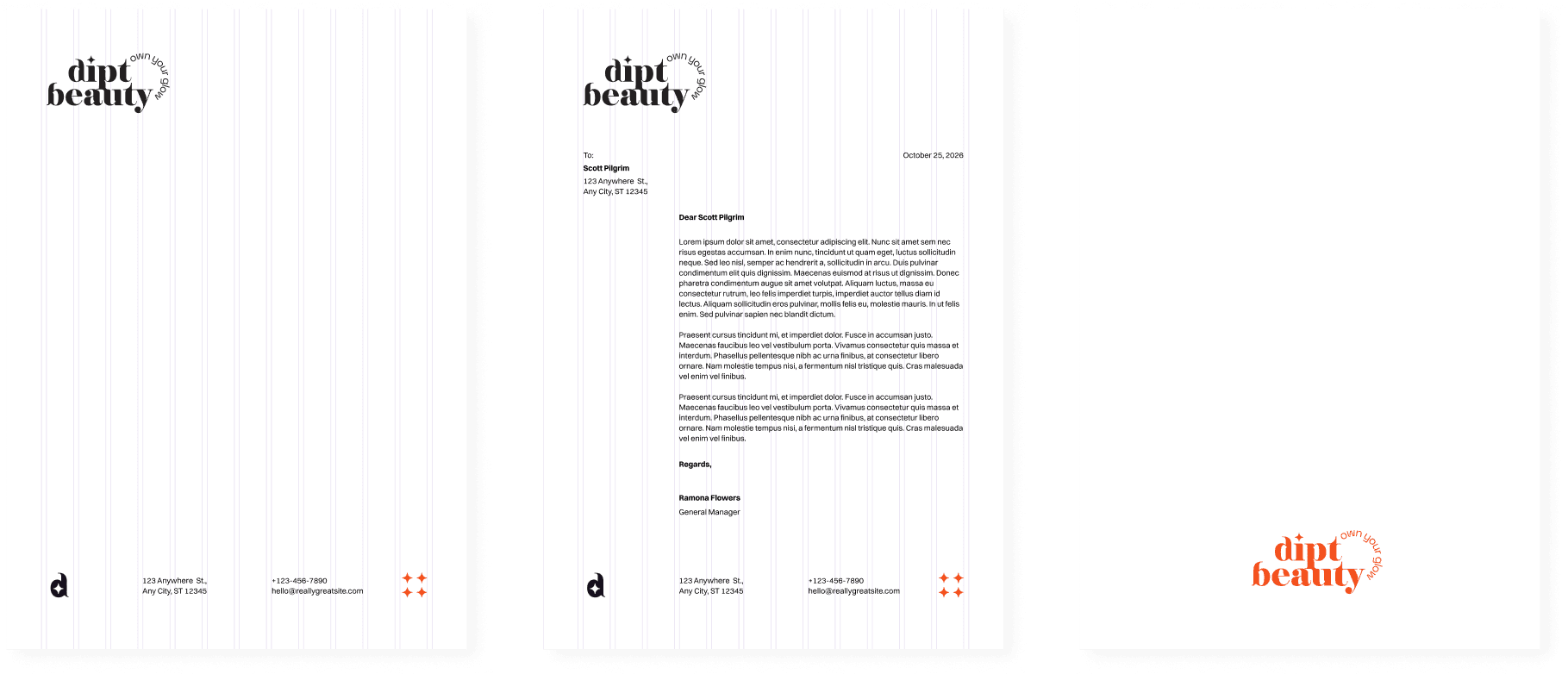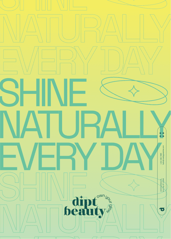 The visual identity embraces a bold, energetic attitude: strong typography, vibrant contrasts, and confident layouts that bring the brand’s clean values to life in a modern way. The result is a striking, expressive look that stands out while staying true to Dipt Beauty’s natural and sustainable ethos.